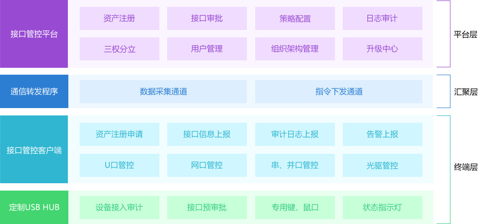 在電力行業中,各地市發電廠、變電站等廠站的USB設備接入難以管控,易出現違規設備及U盤隨意接入風險。通過在主站部署接口管控平臺、在廠站主機安裝接口管控裝置,可實現對下屬廠站設備接口的集中管理。
